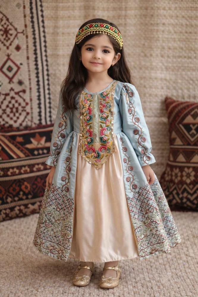 فستان ازرق ملكي بتصميم تراثي فاخر يمنح إطلالة فخمة وأصيلة، يجمع بين نعومة الساتان وجمال التطريز ليليق بالمناسبات الخاصة.