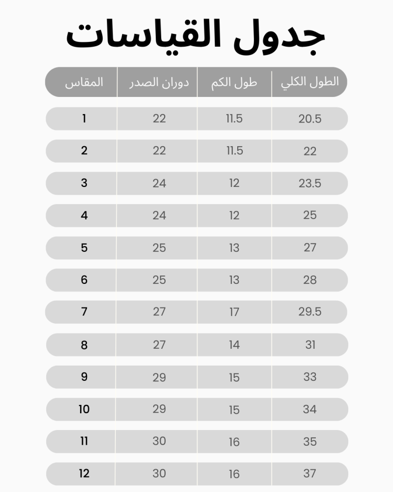 - المقاس: من 1 : 12 سنة .
