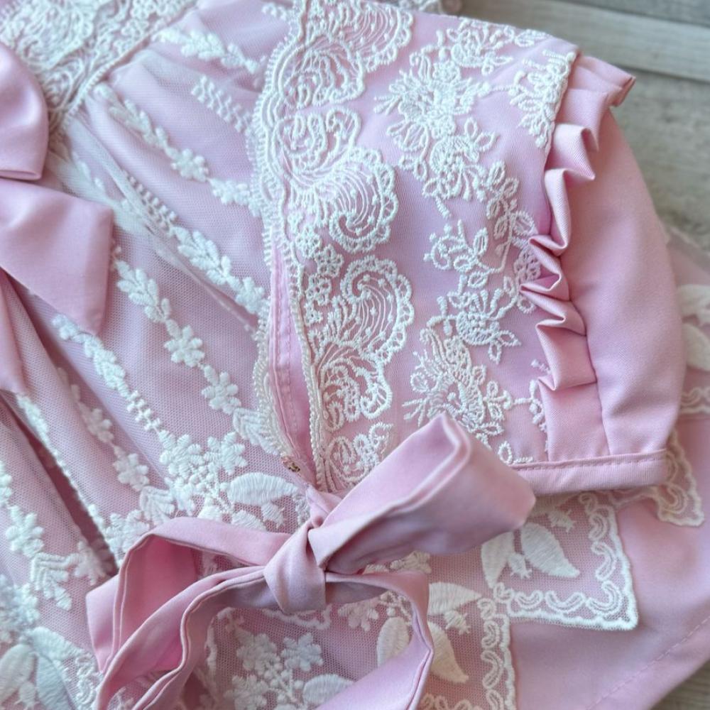 - تصميم أنيق: يتضمن تفاصيل من الكشاكش وديكور رائع مع حزام مزين، مما يجعله خيارًا مثاليًا للمناسبات الخاصة.