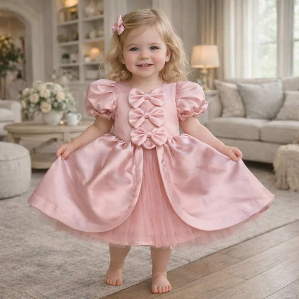 فستان بناتي وردي بلون ناعم وأنيق يمنح طفلتك إطلالة حالمة تجمع بين البراءة والفخامة في كل مناسبة خاصة.