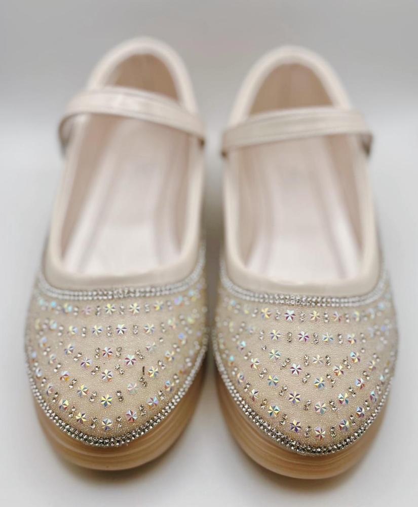 إذا كنتِ تبحثين عن حذاء لون بيج أنيق يجمع بين الفخامة والراحة لطفلتك فهذا التصميم المرصع بالكريستال يمنح إطلالة مميزة تناسب جميع المناسبات.
