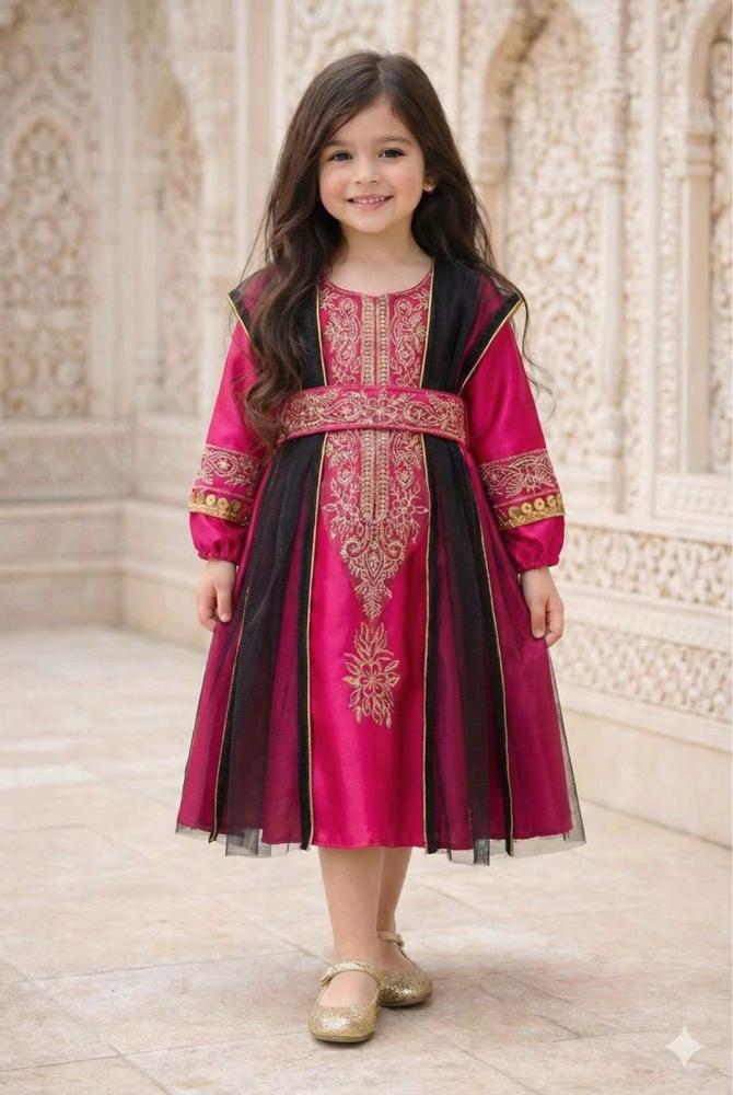 اختاري فستان فوشي واسود من متجر الفتيات الوردية لتمنحي طفلتك إطلالة تراثية فاخرة تظل مميزة في كل احتفال.
