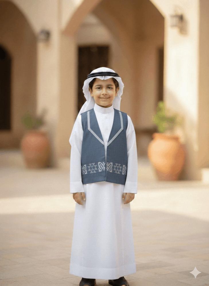 سديري ازرق سديري الأصايل يمنح طفلك إطلالة تراثية راقية بلون هادئ وجذاب يجمع بين الأصالة والأناقة ليظهر بثقة في كل مناسبة.