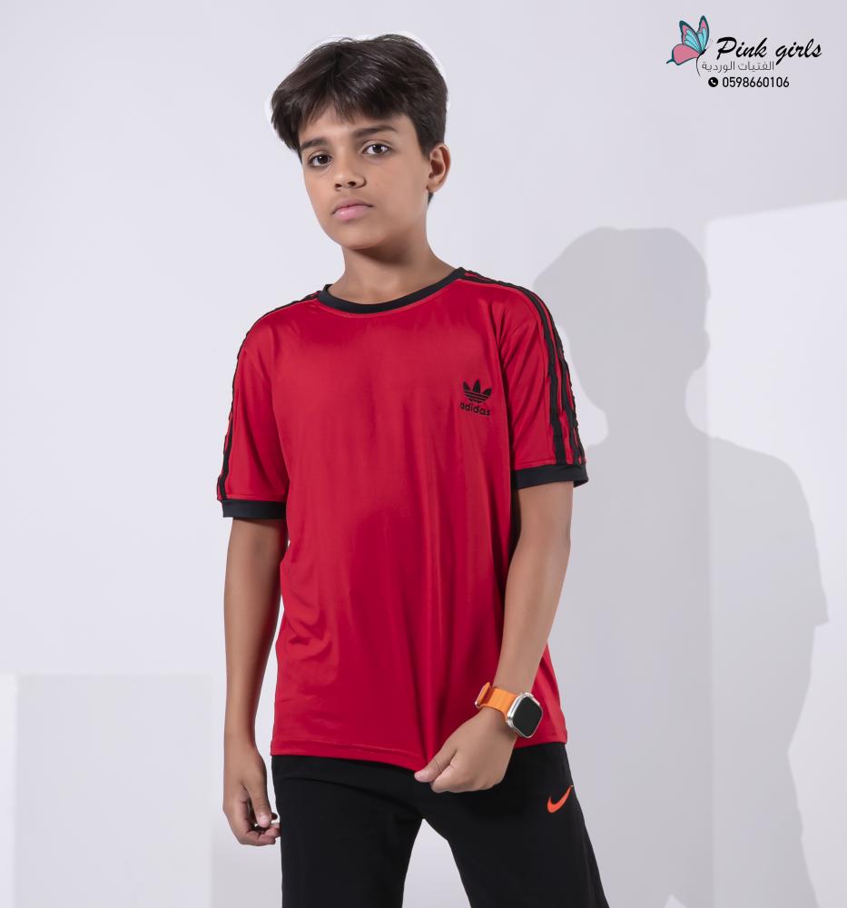 تيشيرت اديداس رياضي قصير الاكمام مناسب للركض واللياقة البدنية (احمر بخطوط سوداء)