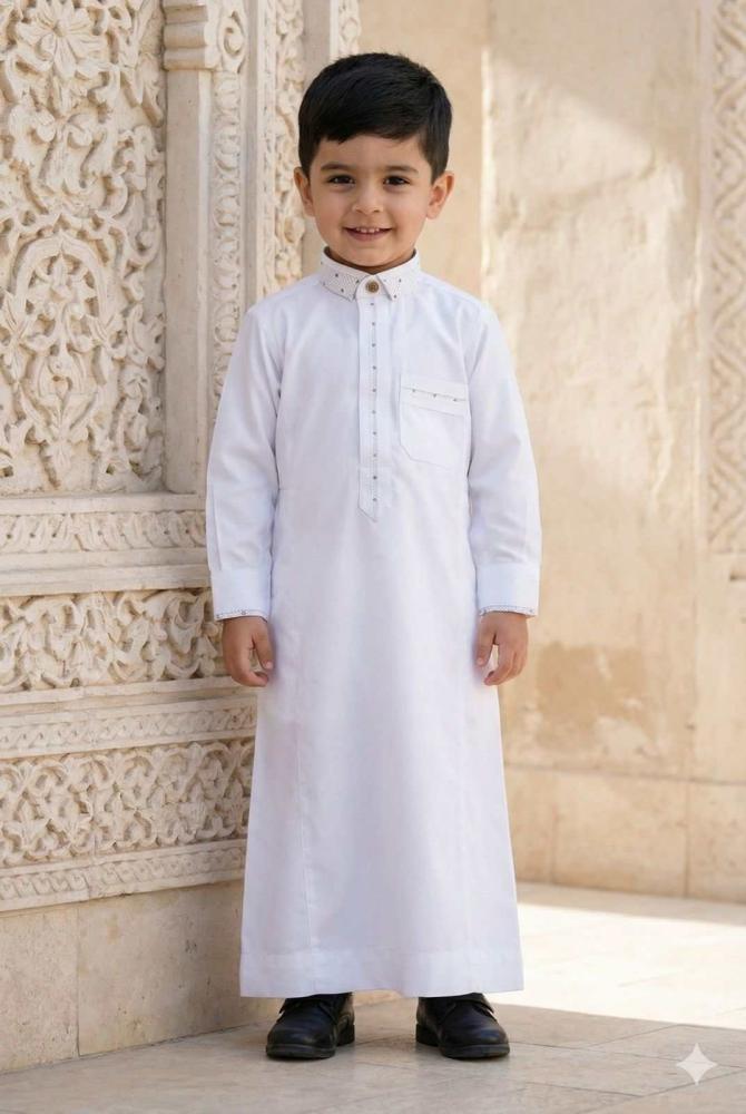 ثوب اطفال ولادي بلون سمني هادئ يمنح طفلك إطلالة مرتبة وأنيقة تجمع بين البساطة والرقي بأسلوب يناسب مختلف المناسبات.