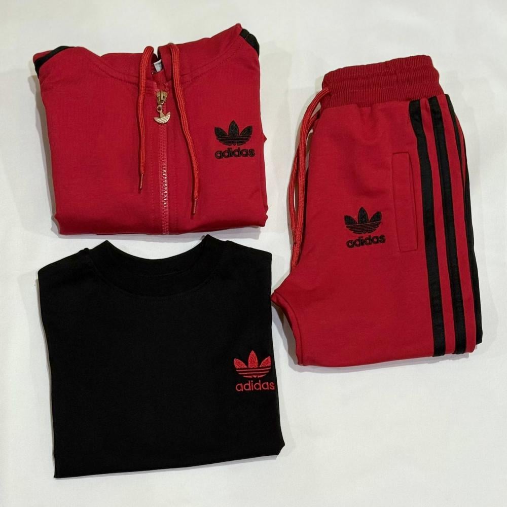 طقم اديداس احمر خيار مثالي للي يحب يلبس شي مريح وفخم بنفس الوقت، بخامة عالية الجودة ولمسة ألوان تعكس الثقة والطاقة.