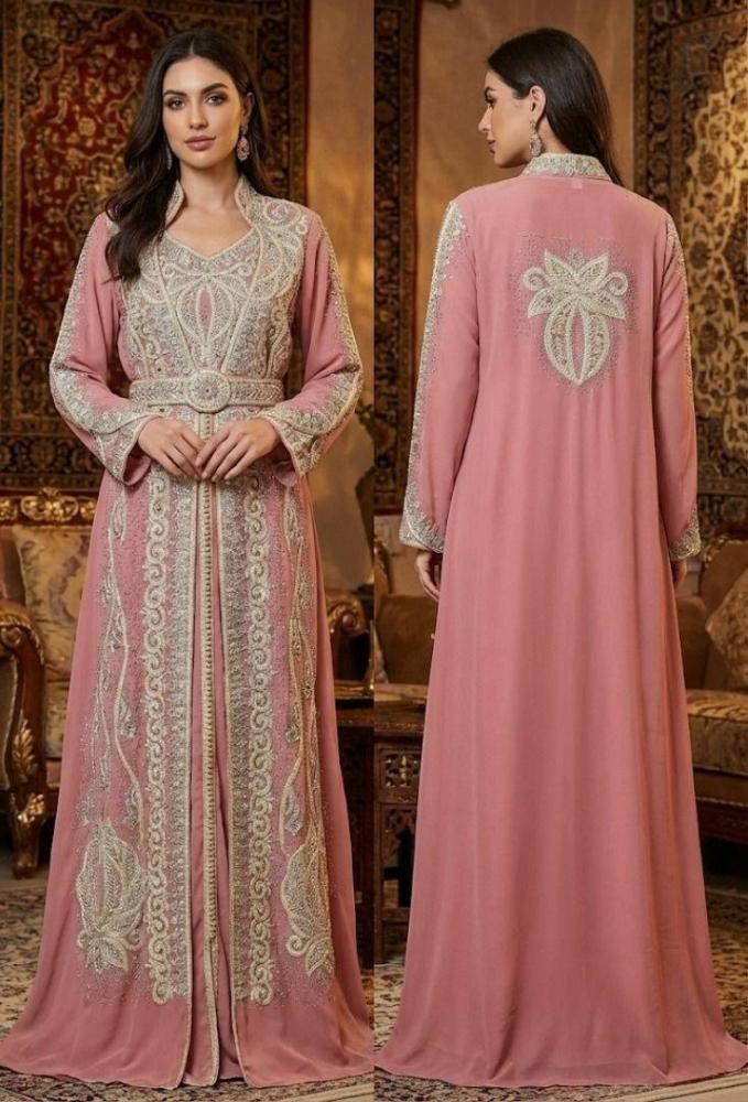 قفطان مغربي وردي يجمع بين الأناقة والفخامة التراثية، يمنحك حضورًا ساحرًا وإحساسًا بالراحة والثقة في الخروج والمناسبات.