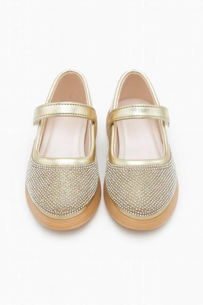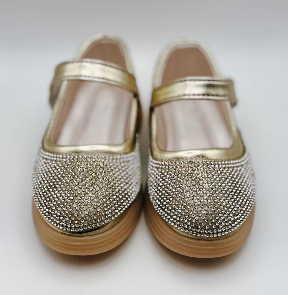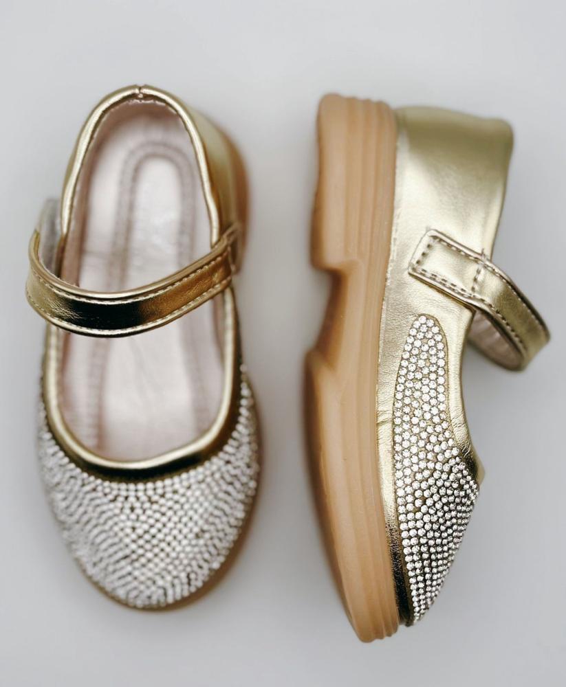 حذاء بناتي ذهبي فاخر مرصع بالكريستال ليمنح طفلتك إطلالة لامعة وأنيقة تناسب المناسبات والحفلات بأعلى مستوى من الجاذبية والراحة.
