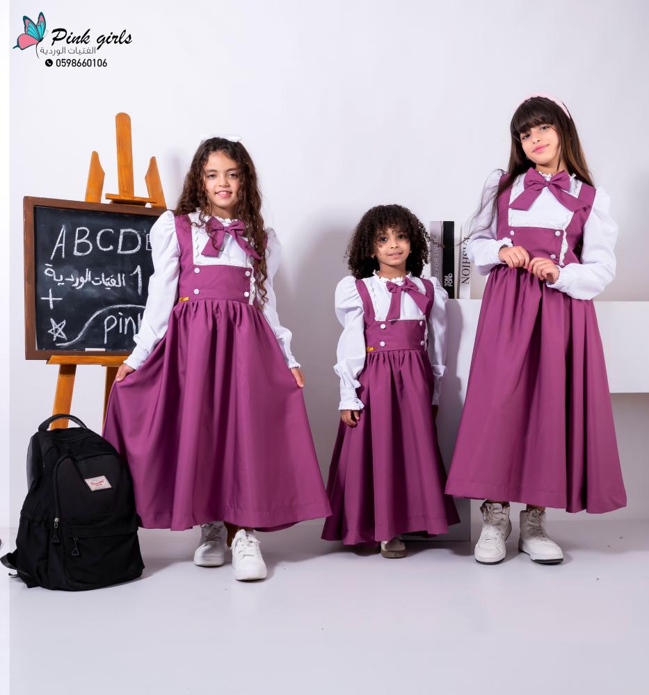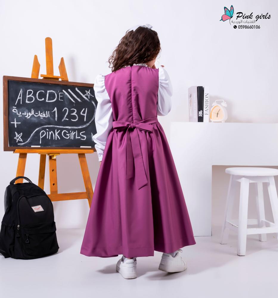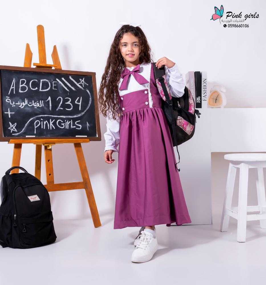 ابدأي عامك الدراسي بأناقة وتميز مع مريول بنفسجي ذو الأكمام الطويلة، بتصميم مرتب وأزرار أنيقة مع ربطة عنق تضيف لمسة راقية.